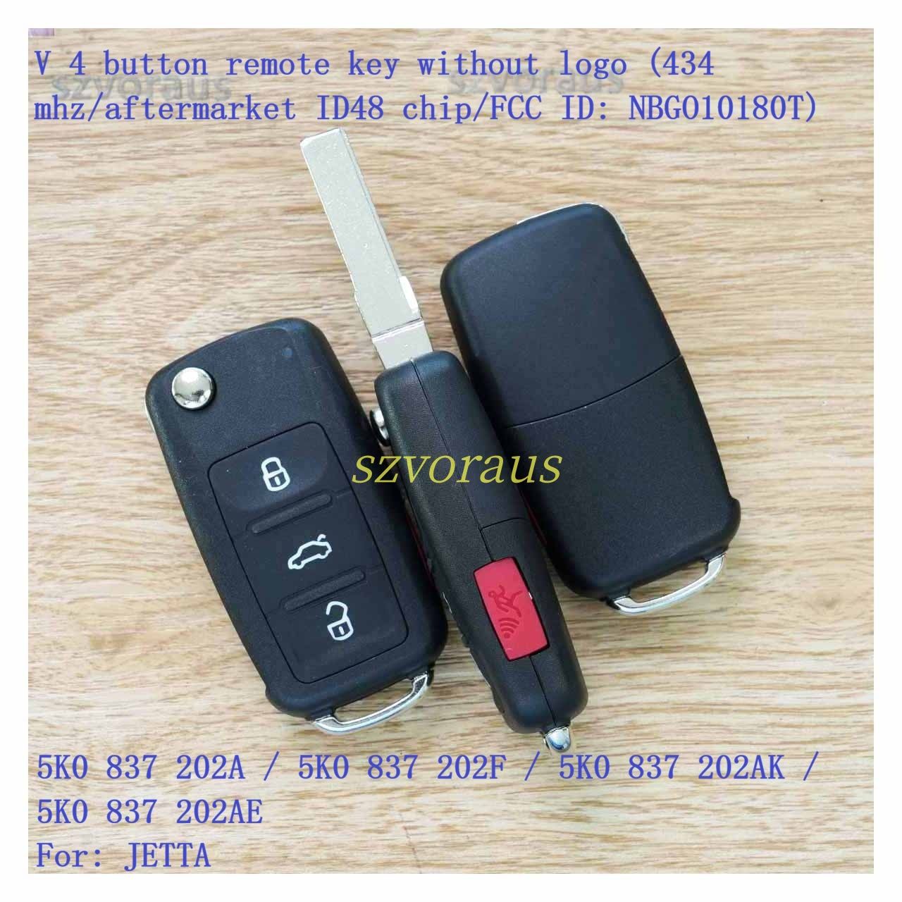 V 4 button remote key without logo (434 mhz/aftermarket ID48 chip/FCC ID: NBGO10180T) 5K0 837 202A / 5K0 837 202F / 5K0 837 202AK / 5K0 837 202AE For: JETTA 2011-2016 /PASSAT 2012-2016 /BEETLE 2012-2016 /GTI 2011-2013 /GOLF 2012-2014/ EOS 2011-2016/ GLI