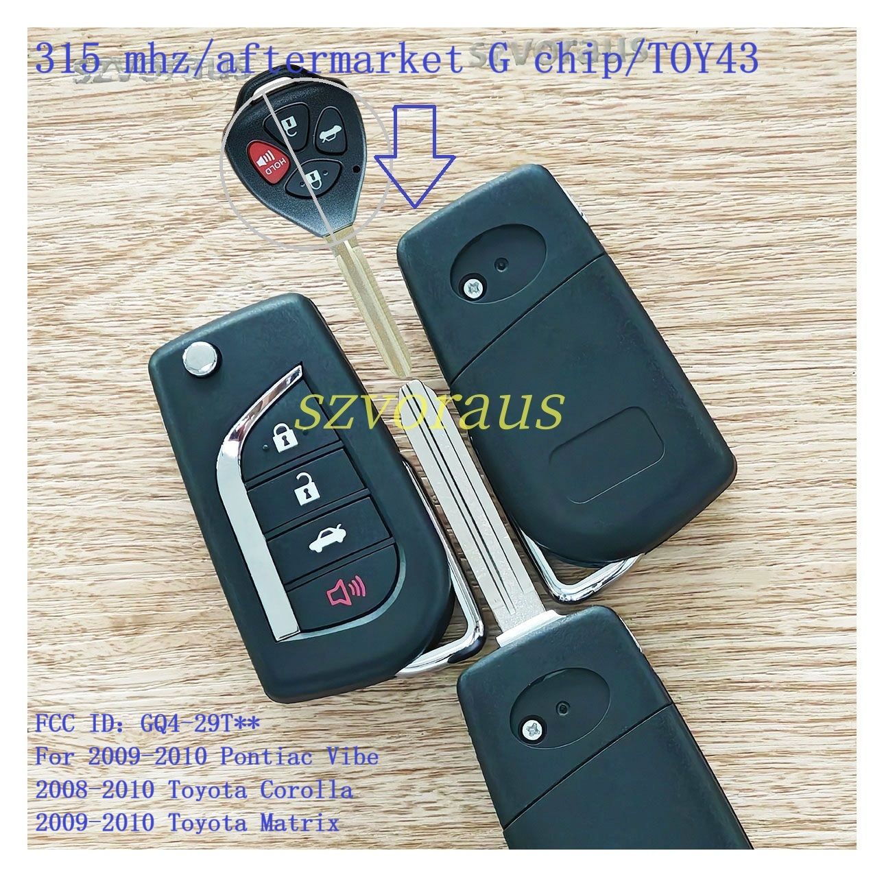 To 4 flip button remote key (315 mhz/aftermarket G chip/TOY43) FCC ID:GQ4-29T** For 2009-2010 Pontiac Vibe 2008-2010 Toyota Corolla 2009-2010 Toyota Matrix
