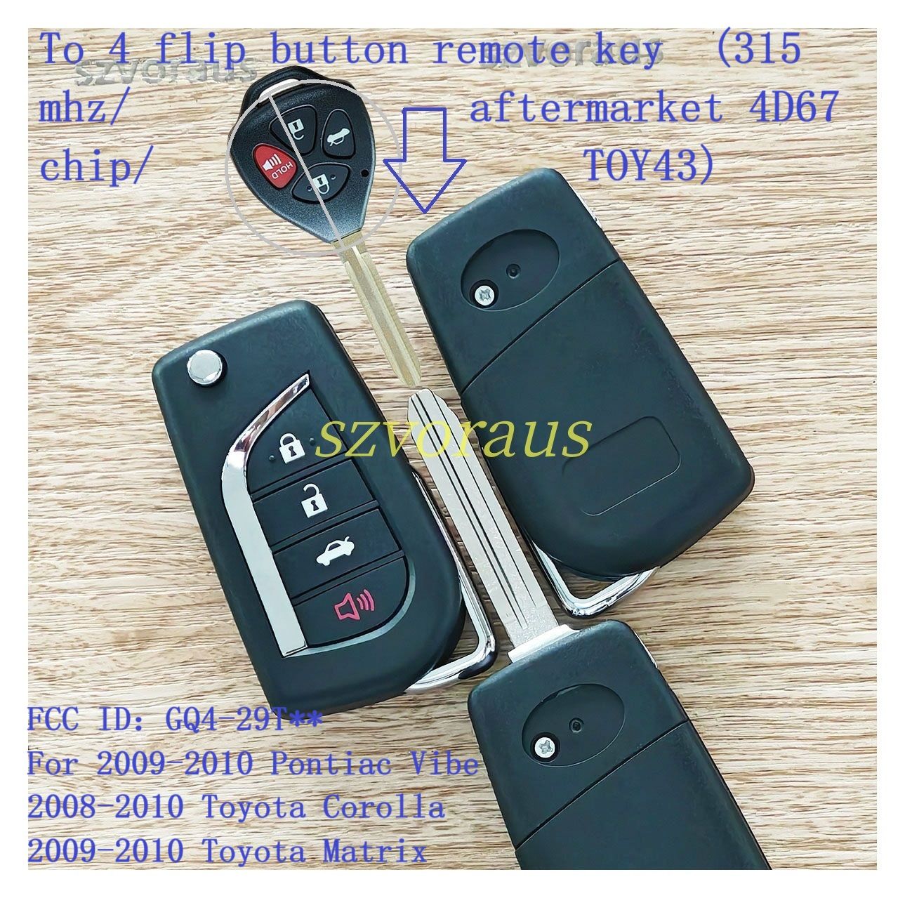 To 4 flip button remote key (315 mhz/ aftermarket 4D67 chip/TOY43) FCC ID:GQ4-29T** For 2009-2010 Pontiac Vibe 2008-2010 Toyota Corolla 2009-2010 Toyota Matrix