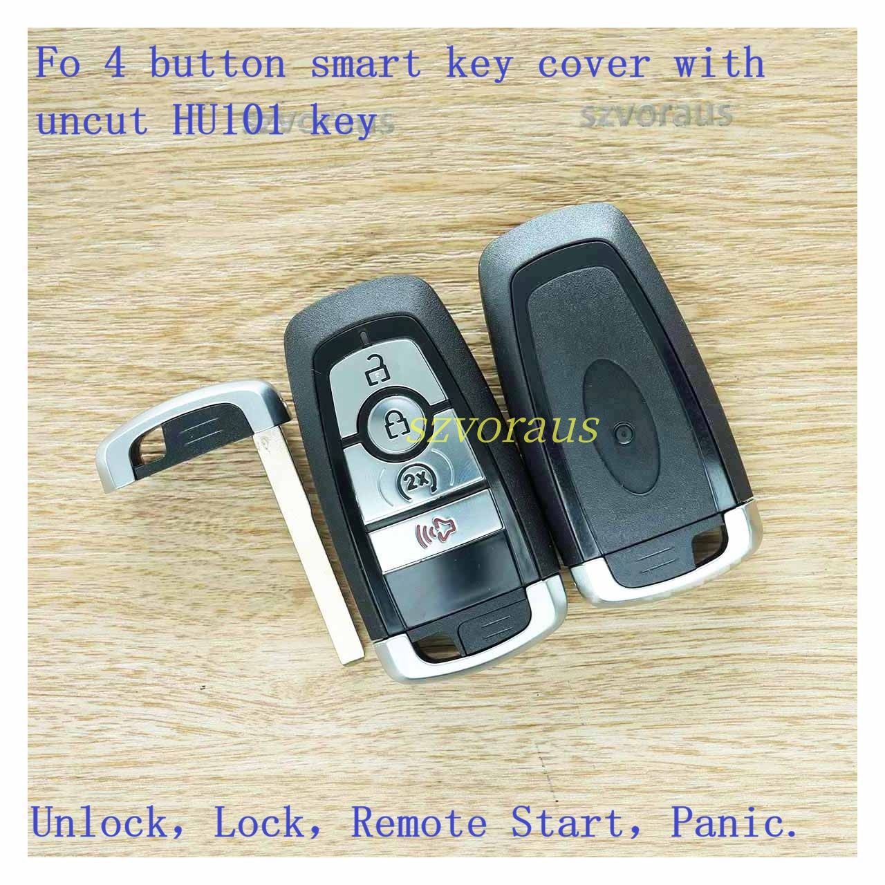 Fo 4 button smart key cover with uncut HU101 key Unlock,Lock,Remote Start,Panic.