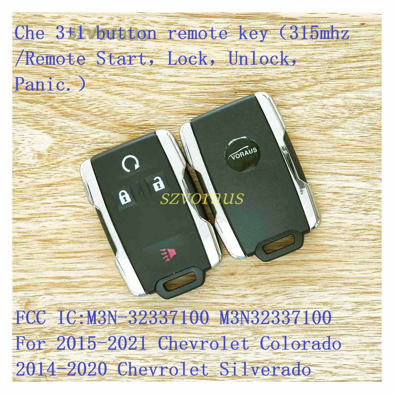 Che 3+1 button remote key(315mhz /Remote Start,Lock,Unlock,Panic.) FCC IC:M3N-32337100 M3N32337100 For 2015-2021 Chevrolet Colorado 2014-2020 Chevrolet Silverado