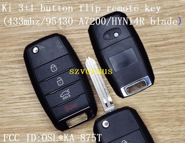 Ki 3+1 button flip remote key (433mhz/95430-A7200/HYN14R blade) FCC ID:OSL*KA-875T