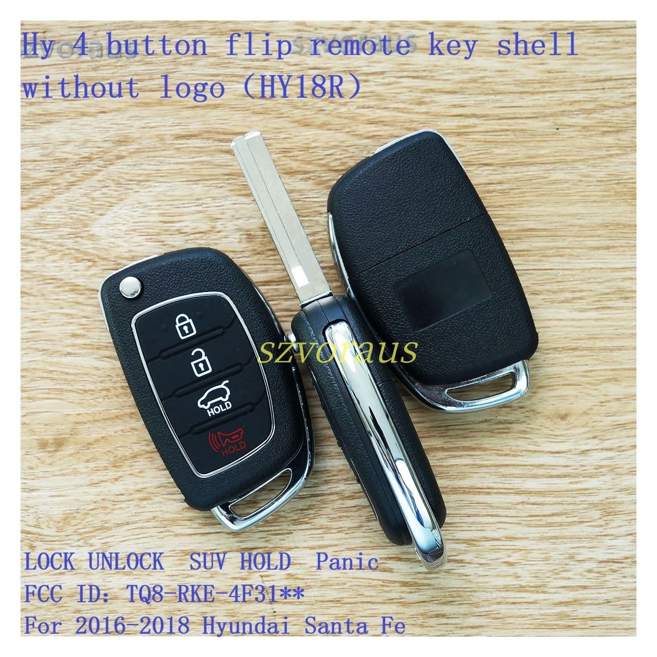 Hy 4 button flip remote key shell without logo(HY18R) LOCK UNLOCK SUV HOLD Panic FCC ID:TQ8-RKE-4F31** For 2016-2018 Hyundai Santa Fe