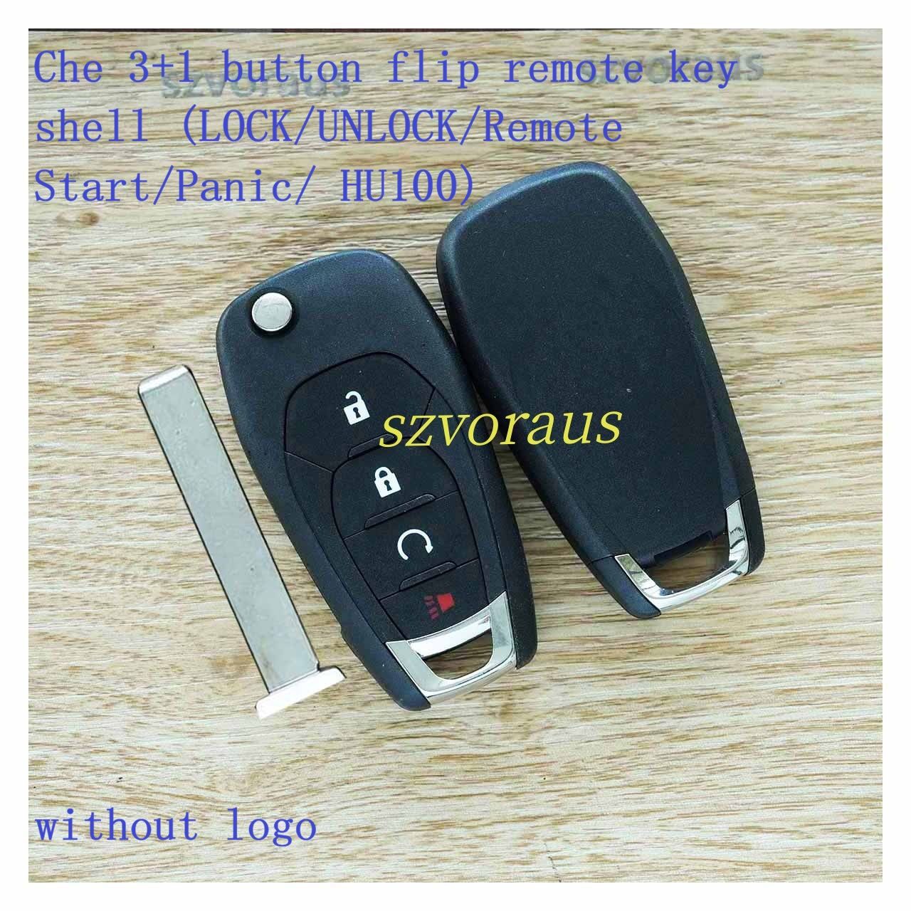 Che 3+1 button flip remote key shell (LOCK/UNLOCK/Remote Start/Panic/ HU100) without logo For FCC ID:LXP-T003