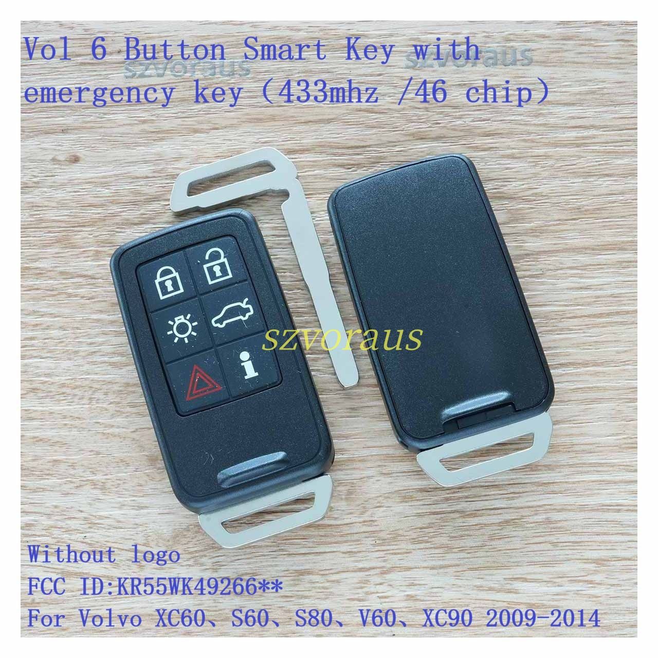 Vol 6 Button Smart Key with emergency key(433mhz /46 chip) Without logo FCC ID:KR55WK49266** For Volvo XC60、S60、S80、V60、XC90 2009-2014