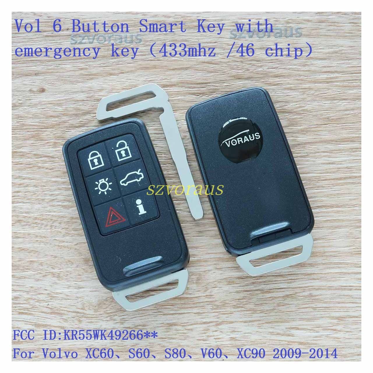 Vol 6 Button Smart Key with emergency key(433mhz /46 chip) FCC ID:KR55WK49266** For Volvo XC60、S60、S80、V60、XC90 2009-2014