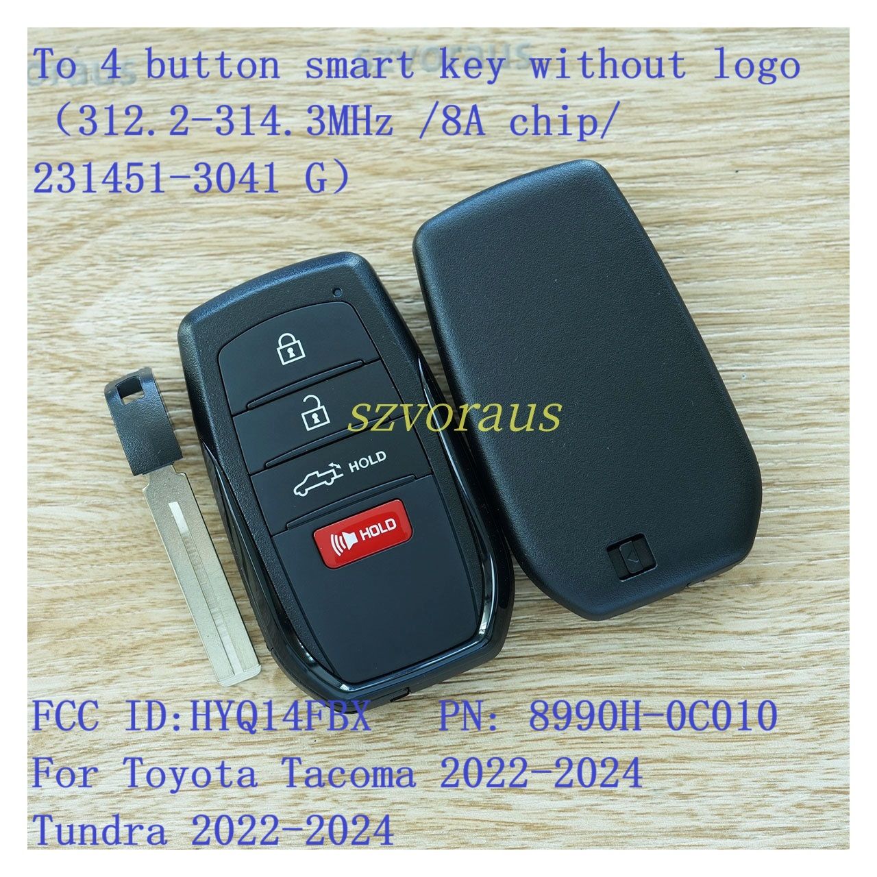 To 4 button smart key without logo (312.2-314.3MHz /8A chip/ 231451-3041 G)FCC ID:HYQ14FBX PN: 8990H-0C010 For Toyota Tacoma 2022-2024 Tundra 2022-2024