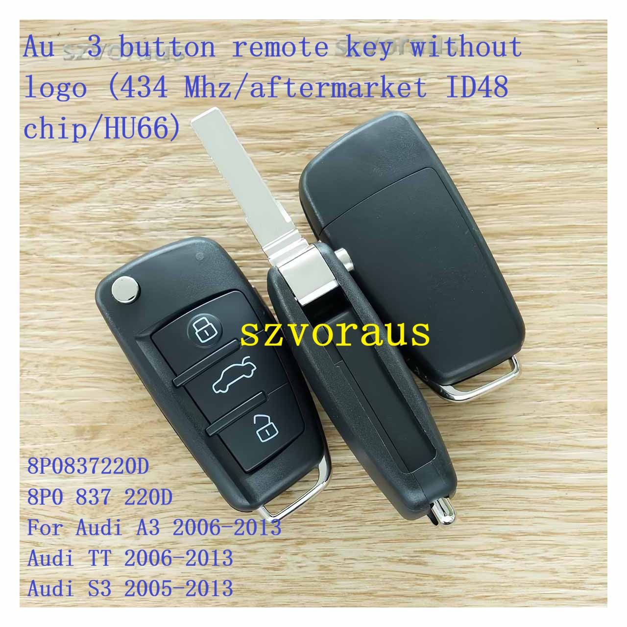 Au 3 button remote key without logo (434 Mhz/aftermarket ID48 chip/HU66) 8P0837220D 8P0 837 220 D For Audi A3 2006-2013 Audi TT 2006-2013 Audi S3 2005-2013