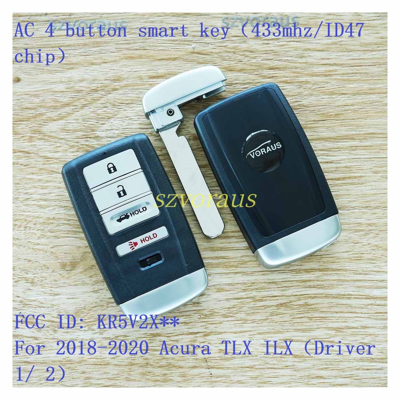 AC 4 button smart key(433mhz/ID47 chip FCC ID: KR5V2X** For 2018-2020 Acura TLX ILX(Driver 1/ 2)