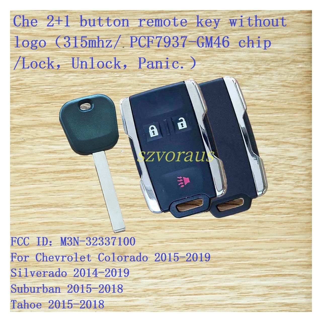 Che 2+1 button remote key without logo(315mhz/ PCF7937-GM46 chip /Lock,Unlock,Panic.) FCC ID:M3N-32337100 For Chevrolet Colorado 2015-2019 Silverado 2014-2019 Suburban 2015-2018 Tahoe 2015-2018