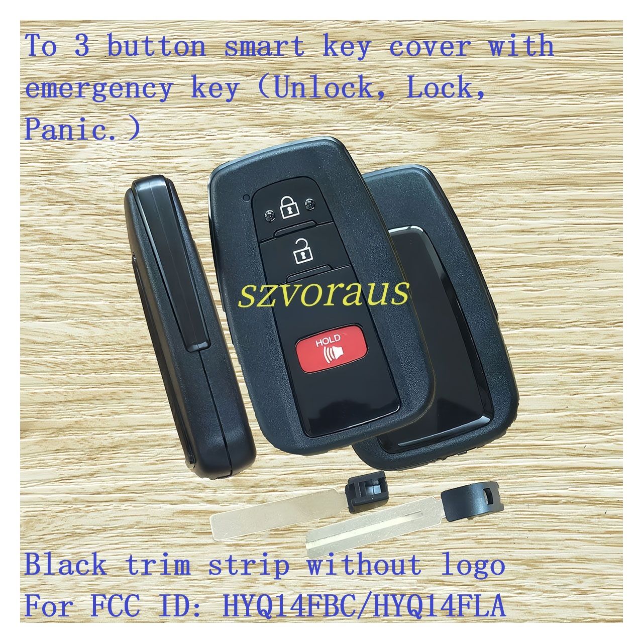 To 3 button smart key cover with emergency key(Unlock,Lock,Panic.)Black trim strip without logo For FCC ID: HYQ14FBC/HYQ14FLA