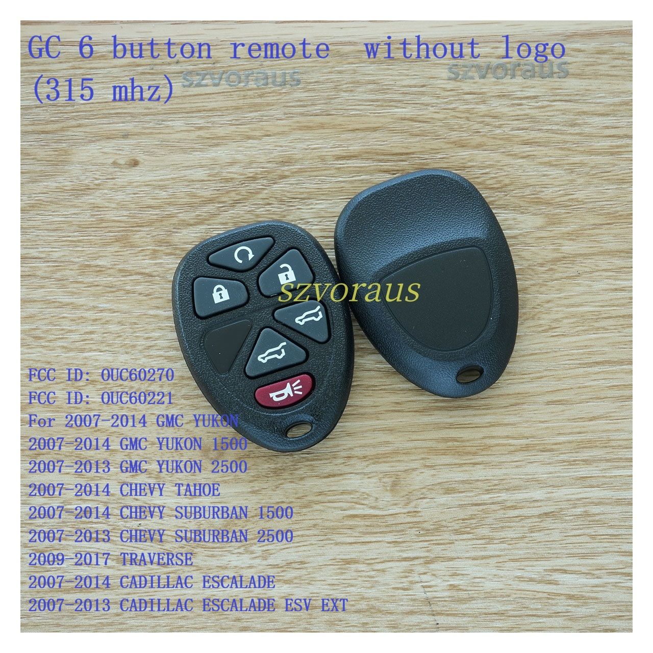 GC 6 button remote without logo (315 mhz) FCC ID: OUC60270 FCC ID: OUC60221 For 2007-2014 GMC YUKON 2007-2014 GMC YUKON 1500 2007-2013 GMC YUKON 2500 2007-2014 CHEVY TAHOE 2007-2014 CHEVY SUBURBAN 1500 2007-2013 CHEVY SUBURBAN 2500 2009-201