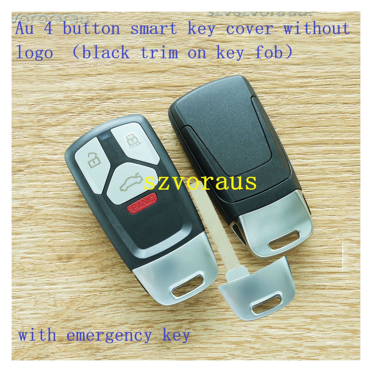 Au 4 button smart key cover without logo (black trim on key fob)with emergency key