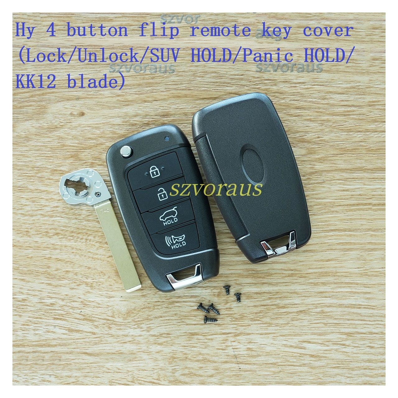 Hy 4 button flip remote key cover (Lock/Unlock/SUV HOLD/Panic HOLD/ KK12 blade)