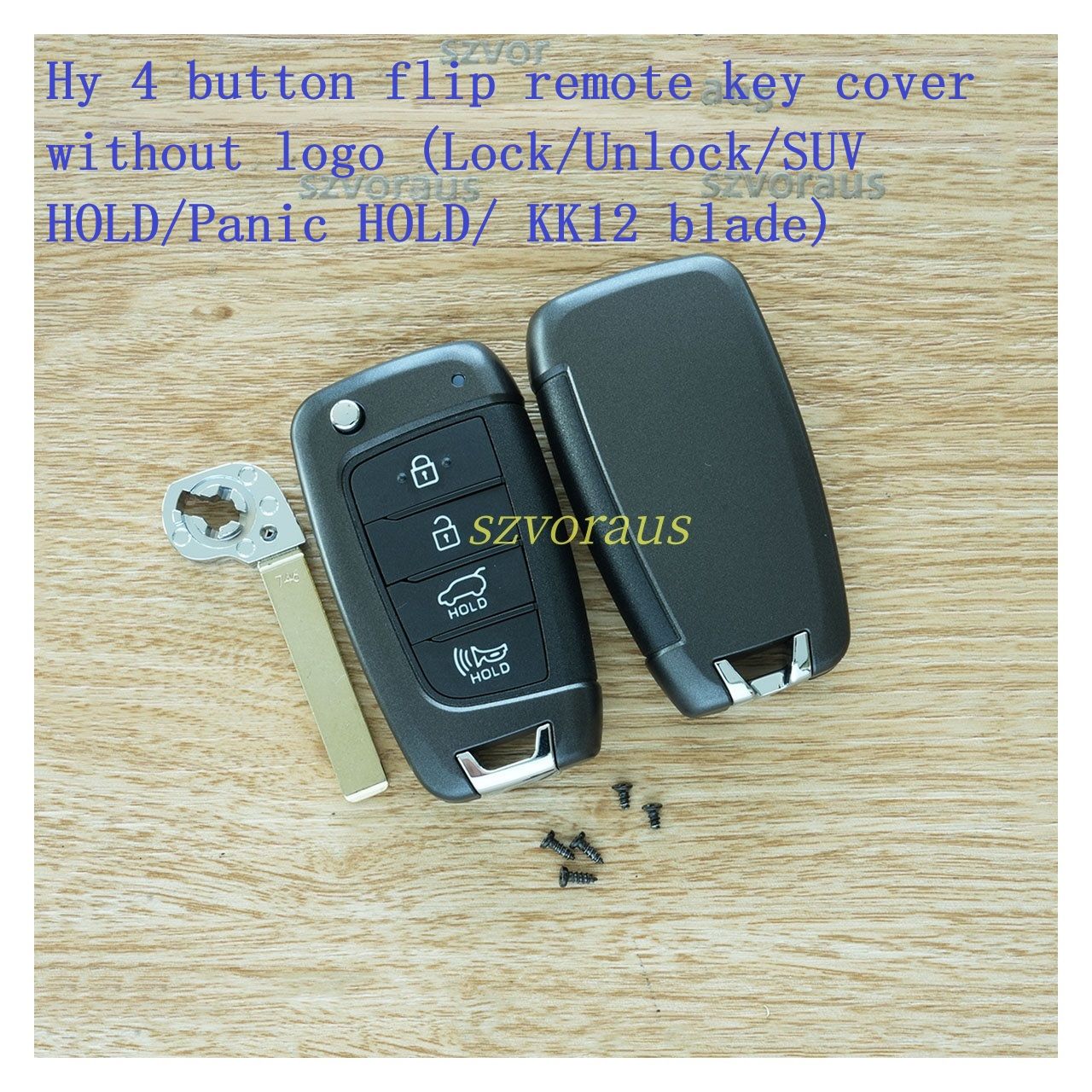 Hy 4 button flip remote key cover without logo (Lock/Unlock/SUV HOLD/Panic HOLD/ KK12 blade)