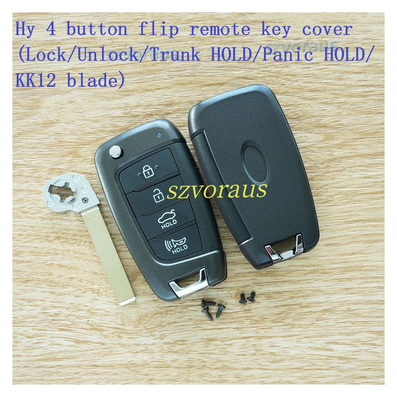 Hy 4 button flip remote key cover (Lock/Unlock/Trunk HOLD/Panic HOLD/ KK12 blade)