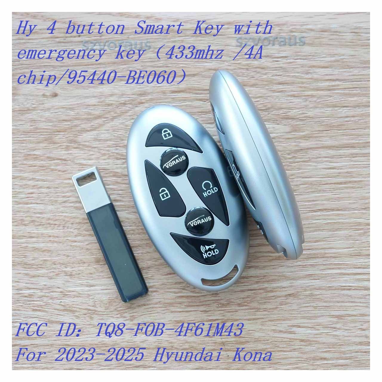 Hy 4 button Smart Key with emergency key(433mhz /4A chip/95440-BE060) FCC ID:TQ8-FOB-4F61M43 For 2023-2025 Hyundai Kona