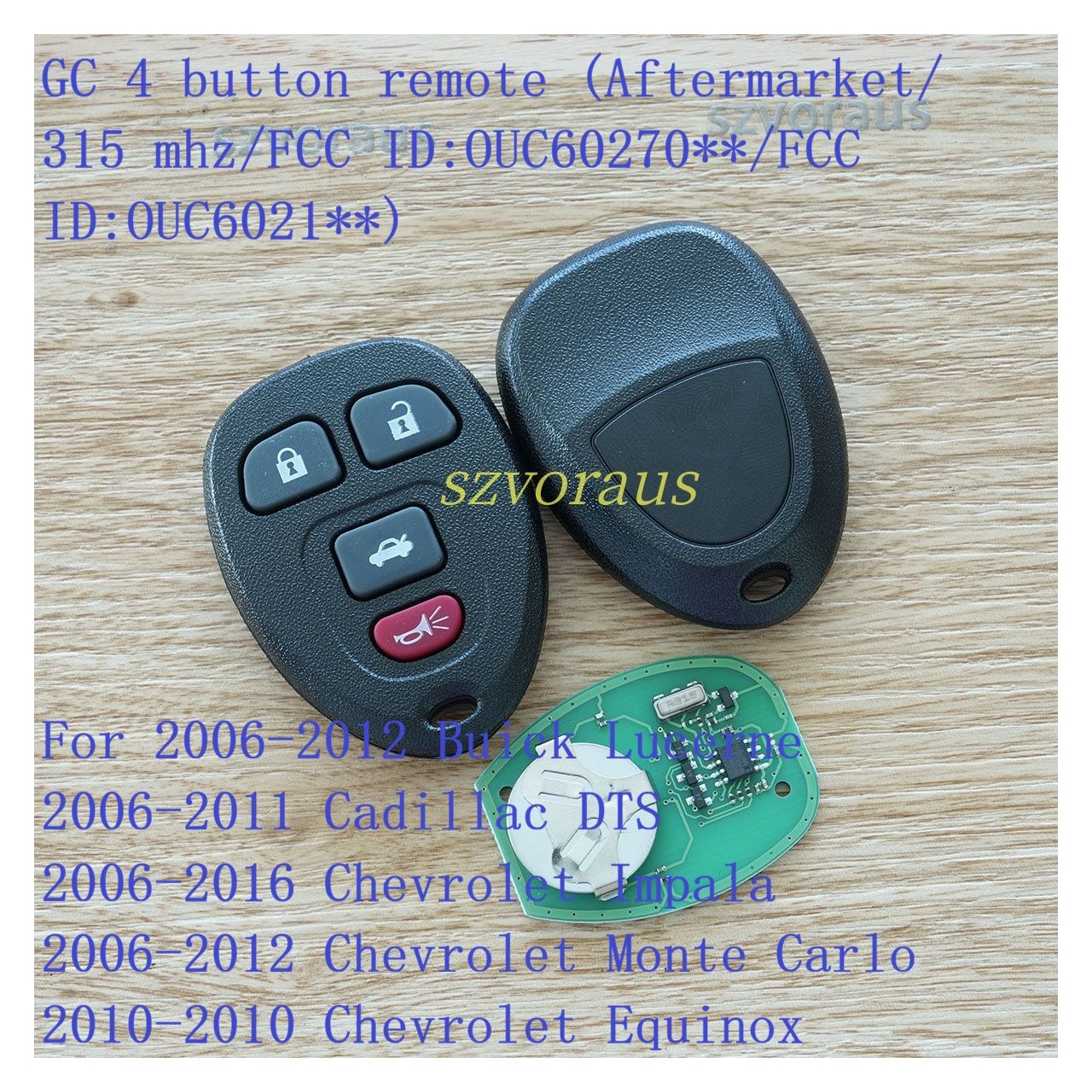 GC 4 button remote (Aftermarket/ 315 mhz/FCC ID:OUC60270**/FCC ID:OUC6021**) For 2006-2012 Buick Lucerne 2006-2011 Cadillac DTS 2006-2016 Chevrolet Impala 2006-2012 Chevrolet Monte Carlo 2010-2010 Chevrolet Equinox