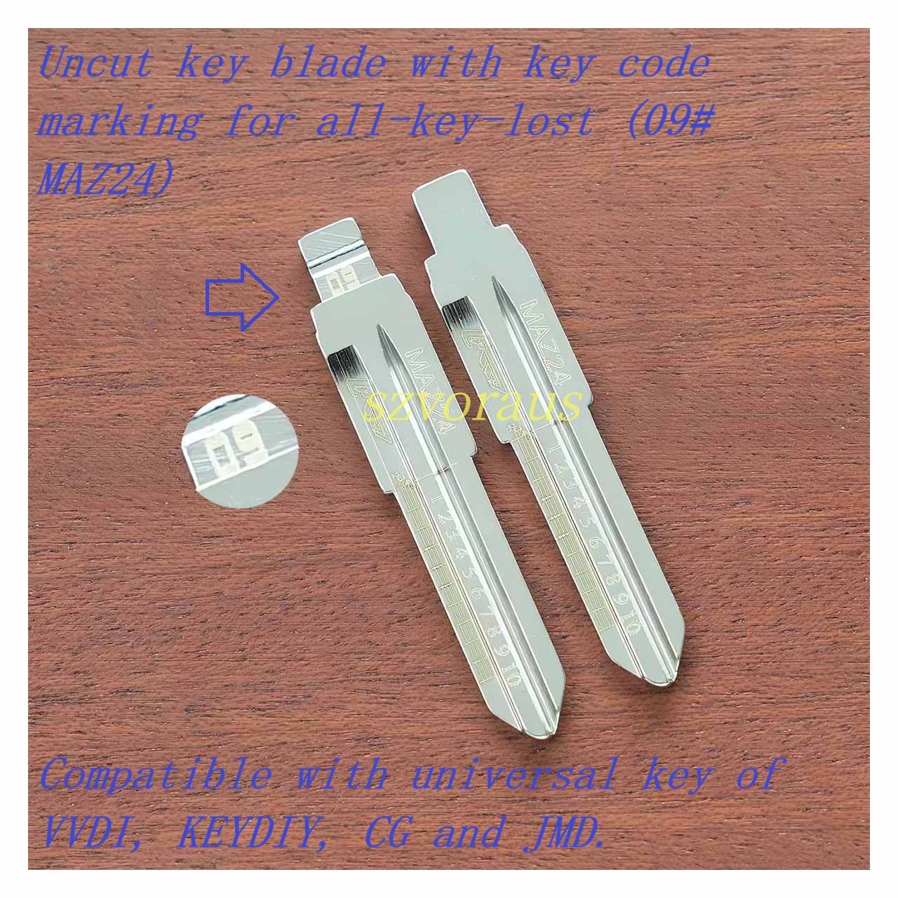 Uncut key blade with key code marking for all-key-lost (09# MAZ24) Compatible with universal key of VVDI, KEYDIY, CG and JMD.
