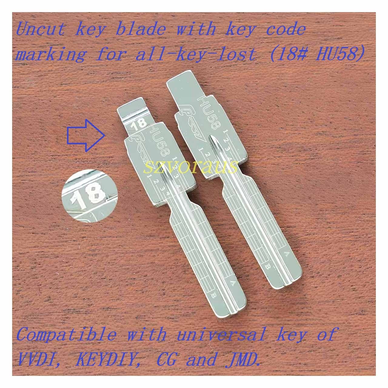 Uncut key blade with key code marking for all-key-lost (18# HU58) Compatible with universal key of VVDI, KEYDIY, CG and JMD.