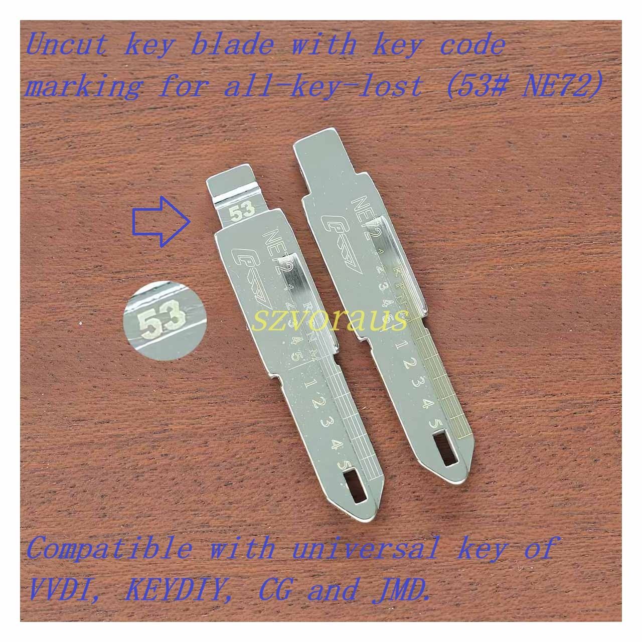 Uncut key blade with key code marking for all-key-lost (53# NE72) Compatible with universal key of VVDI, KEYDIY, CG and JMD.