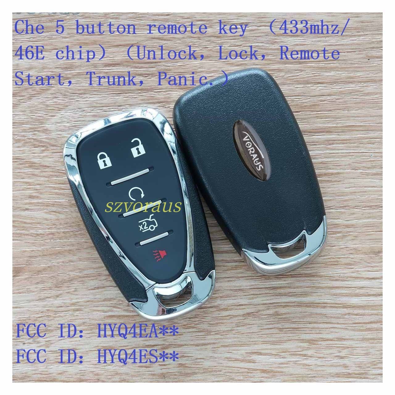 Che 5 button remote key (433mhz/ 46E chip)(Unlock,Lock,Remote Start,Trunk,Panic.) FCC ID:HYQ4EA** FCC ID:HYQ4ES** FCC ID:HYQ4AA** Compatible for 2016-2018 Chevrolet Camaro /Chevrolet Malibu/Chevrolet Cruze