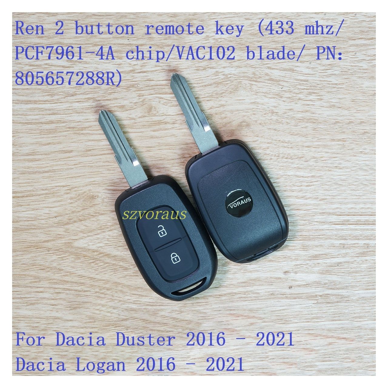 Ren 2 button remote key (433 mhz/ PCF7961-4A chip/VAC102 blade/ PN:805657288R) For Dacia Duster 2016 - 2021 Dacia Logan 2016 - 2021 Dacia Sandero 2016 - 2021 Renault Symbol 2012 - 2018 Renault Trafic 2015 - 2022 (Not applicable to all models, please chec