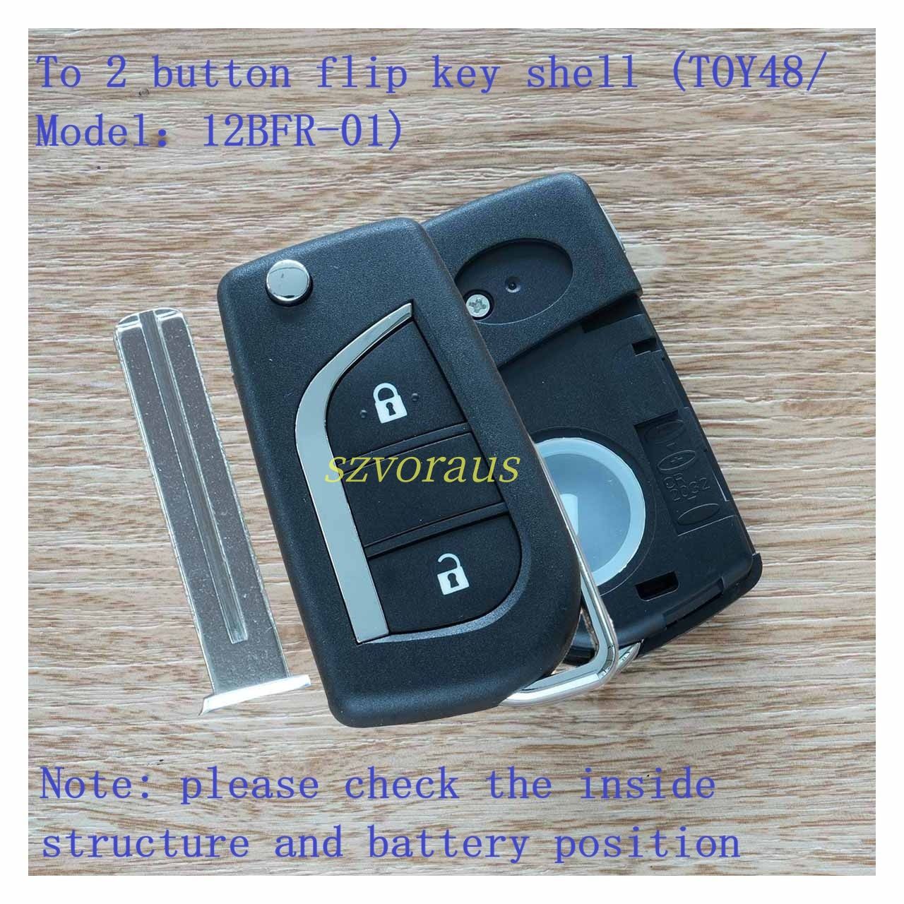 To 2 button flip key shell (TOY48/ Model:12BFR-01) Note: please check the inside structure and battery position