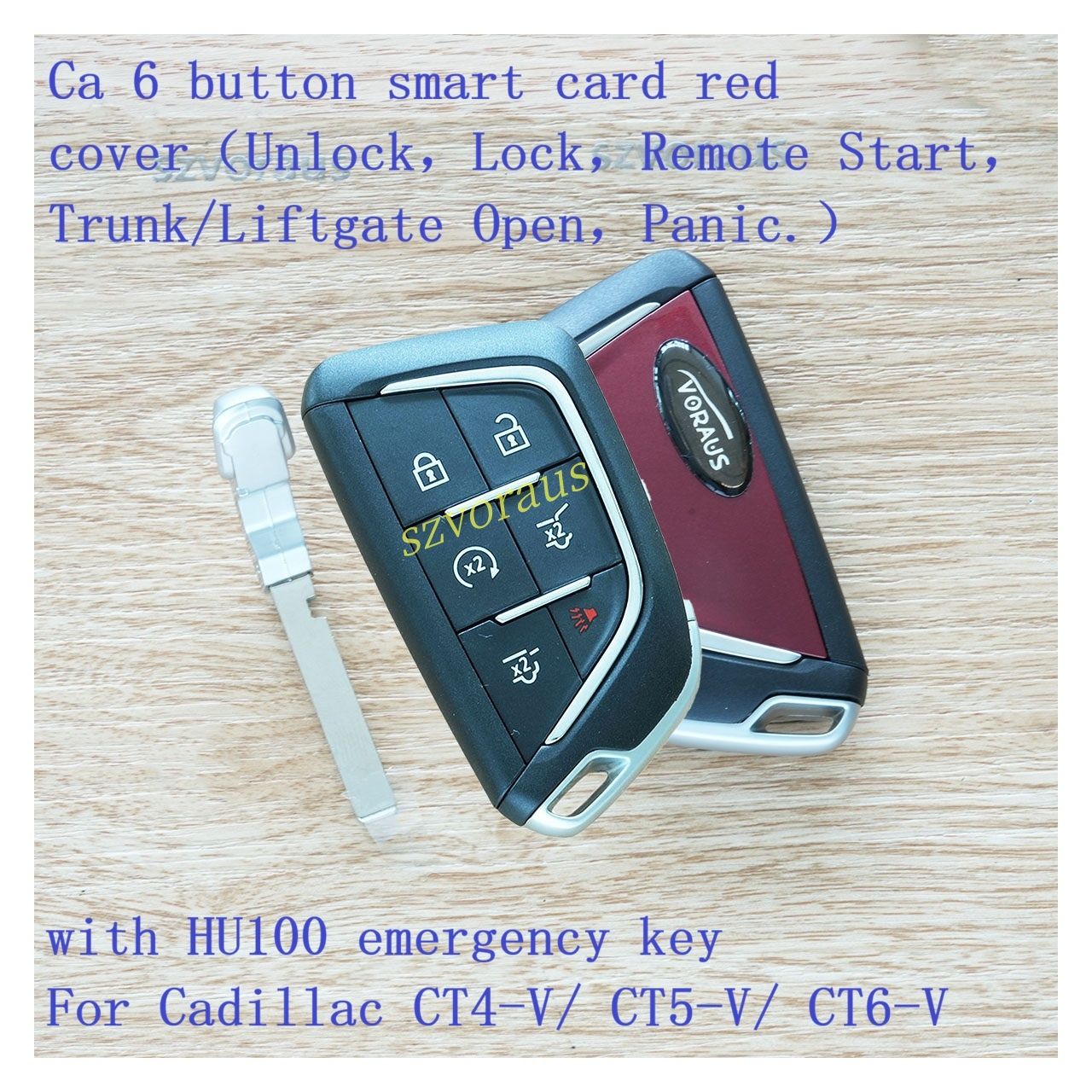 Ca 6 button smart card red cover(Unlock,Lock,Remote Start,Trunk/Liftgate Open,Panic.) with HU100 emergency key For Cadillac CT4-V/ CT5-V/ CT6-Vwith HU100 emergency key For Cadillac CT4-V/ CT5-V/ CT6-V