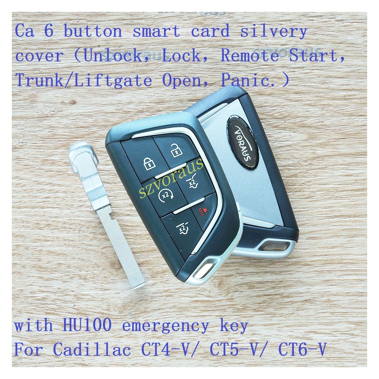 Ca 6 button smart card silvery cover(Unlock,Lock,Remote Start,Trunk/Liftgate Open,Panic.) with HU100 emergency key For Cadillac CT4-V/ CT5-V/ CT6-V