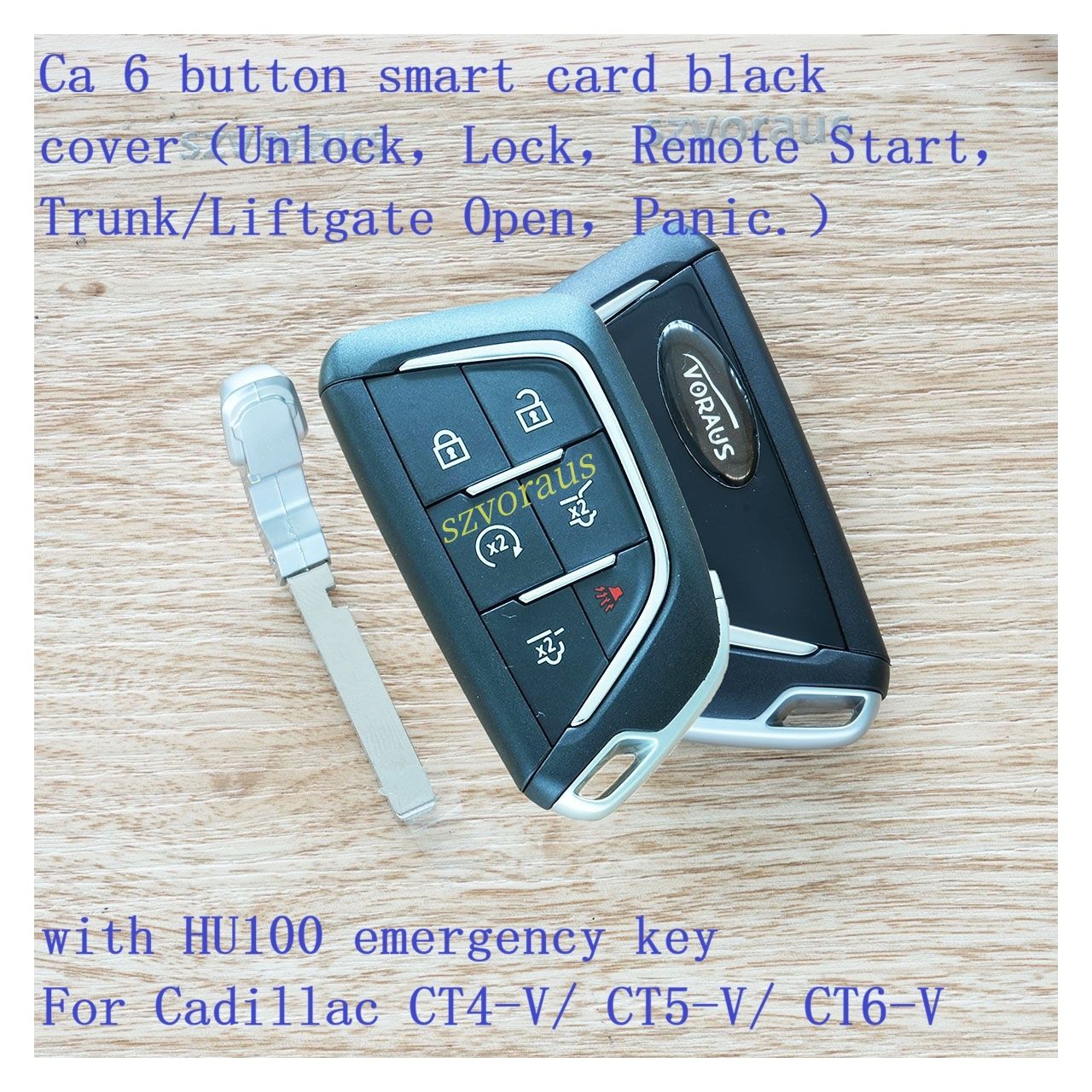 Ca 6 button smart card black cover(Unlock,Lock,Remote Start,Trunk/Li with HU100 emergency key For Cadillac CT4-V/ CT5-V/ CT6-V