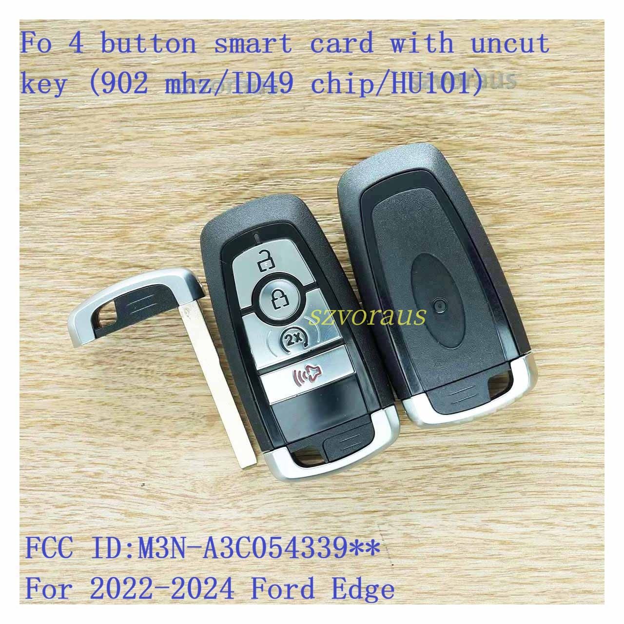 Fo 4 button smart card with uncut key (902 mhz/ID49 chip/HU101) FCC ID:M3N-A3C054339** For 2022-2024 Ford Edge