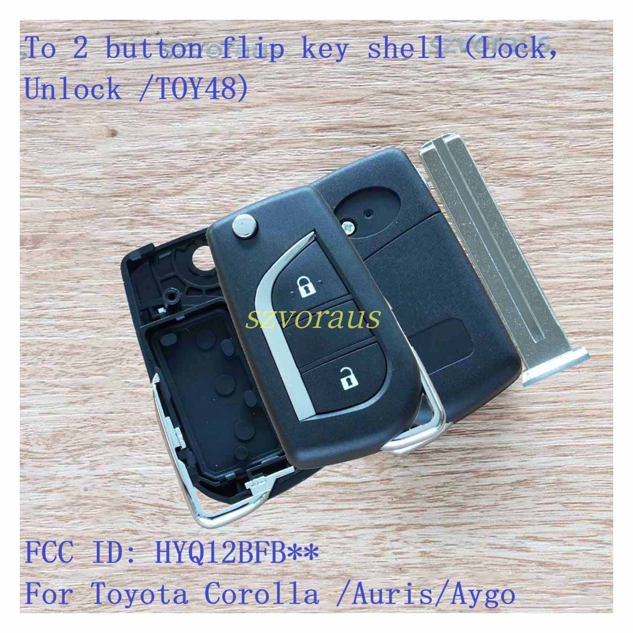 To 2 button flip key shell(Lock,Unlock /TOY48) FCC ID: HYQ12BFB** For Toyota Corolla /Auris/Aygo
