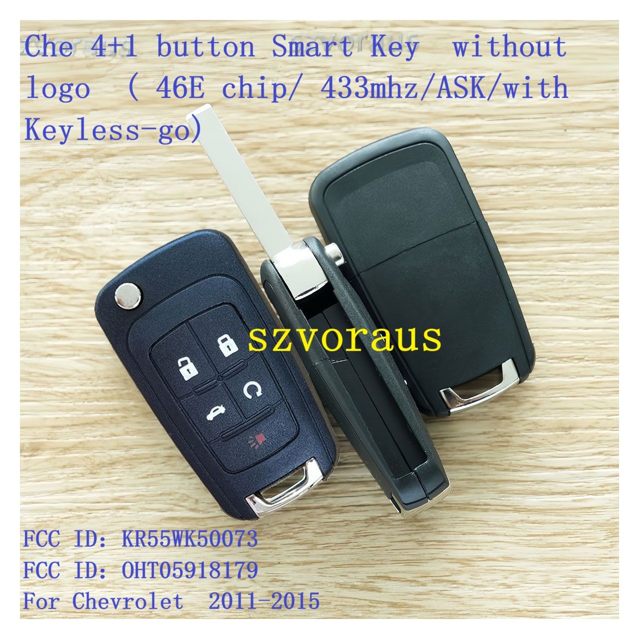 Che 4+1 button Smart Key without logo ( 46E chip/ 433mhz/ASK/with Keyless-go) FCC ID:KR55WK50073 FCC ID:OHT05918179 For Chevrolet 2011-2015