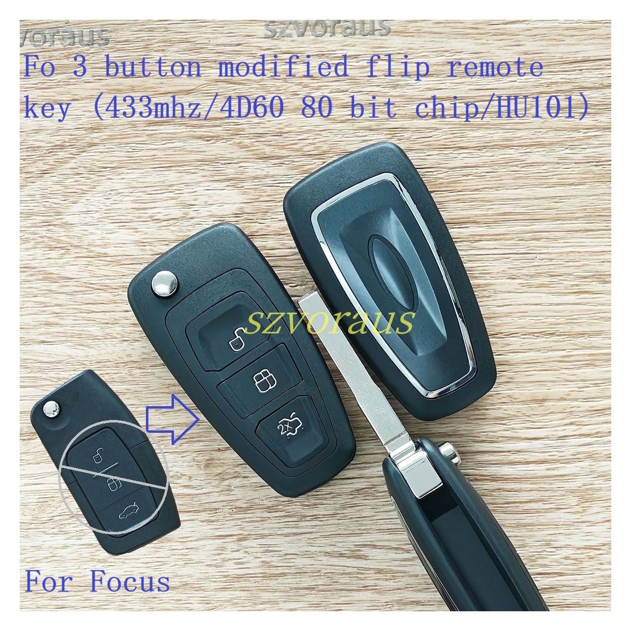 Fo 3 button modified flip remote key (433mhz/4D60 80 bit chip/HU101) For Focus