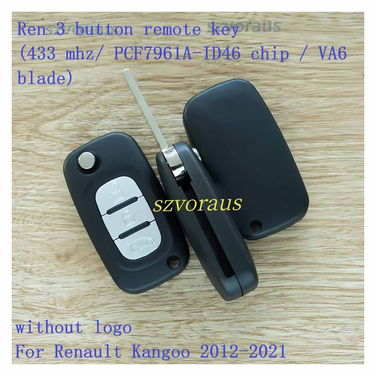 Ren 3 button remote key (433 mhz/ PCF7961A-ID46 chip / VA6 blade) without logo For Renault Kangoo 2012-2021